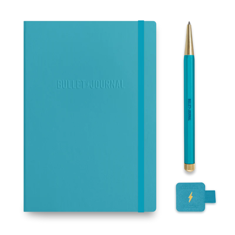 The Gift Set is a limited-run collection of our top-selling items, all in turquoise. This exclusive set includes The Notebook, The Pen, and The Loop. It is presented in a durable collector’s box.